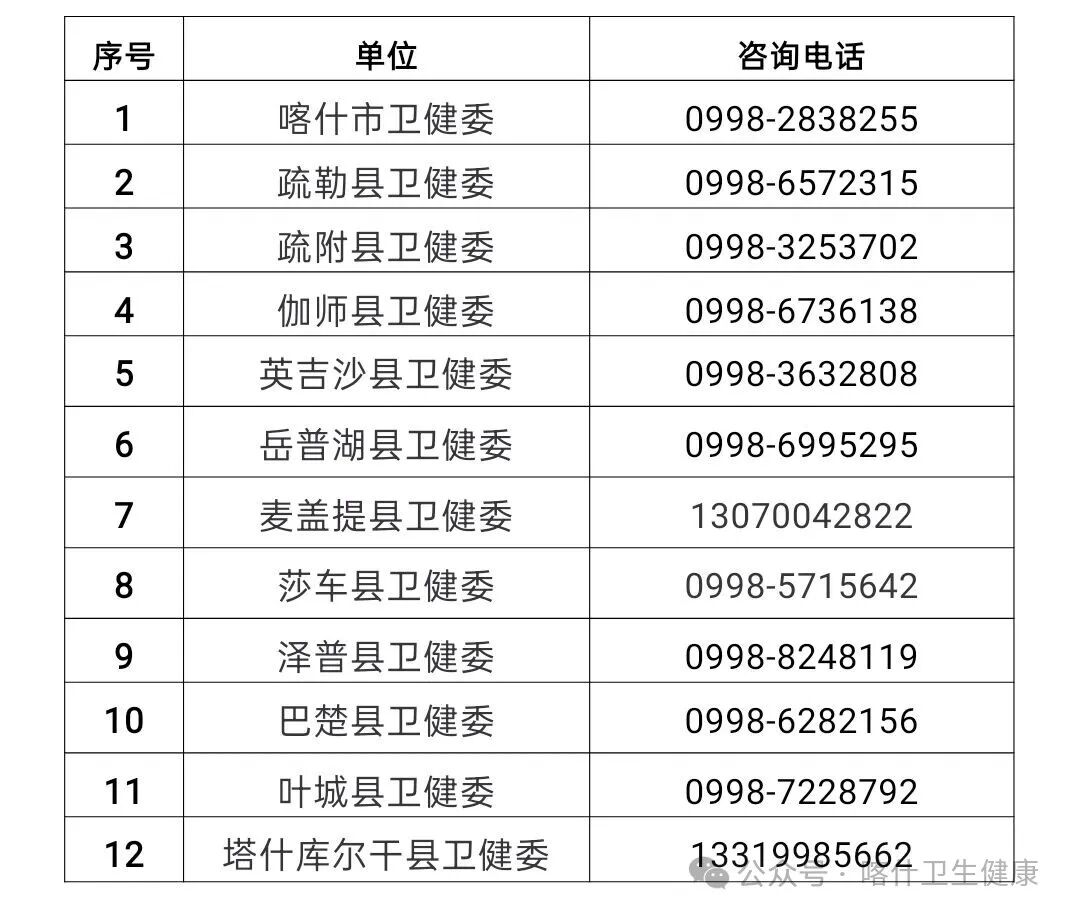 六、喀什考点卫生专业技术资格考试各报名点咨询电话
